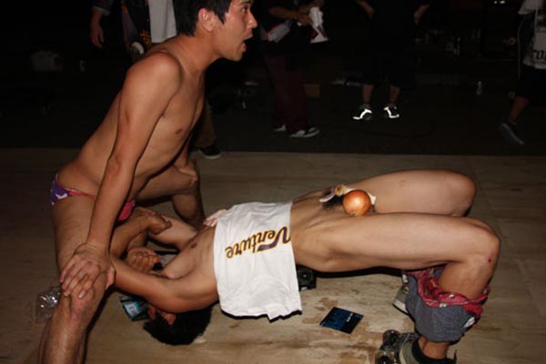 監督の命令により、全裸になることを強要される部員4人。