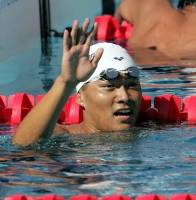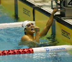 泳いでいるジローさんの画像